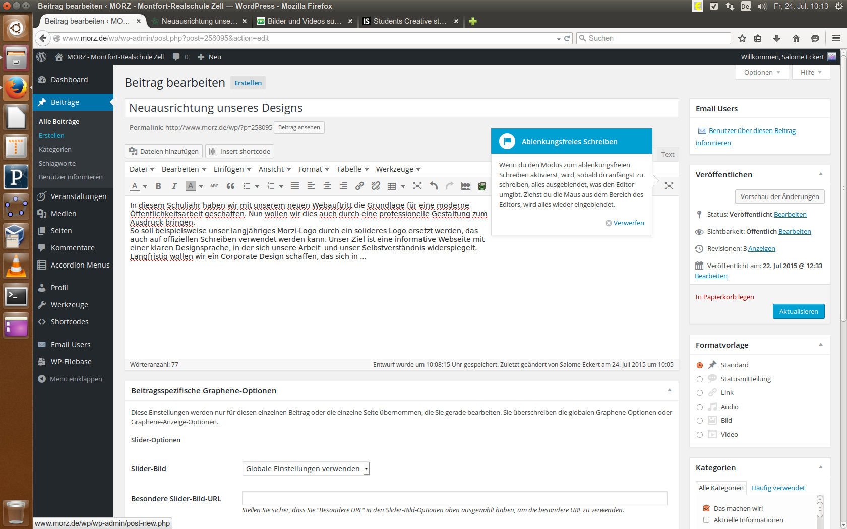 So soll beispielsweise unser langjähriges Morzi-Logo durch ein solideres Logo ersetzt werden, das auch auf offiziellen Schreiben verwendet werden kann. Unser Ziel ist eine informative Webseite mit einer klaren Designsprache, in der sich unsere Arbeit  und unser Selbstverständnis widerspiegelt. Langfristig wollen wir ein Corporate Design schaffen, das sich in …sc